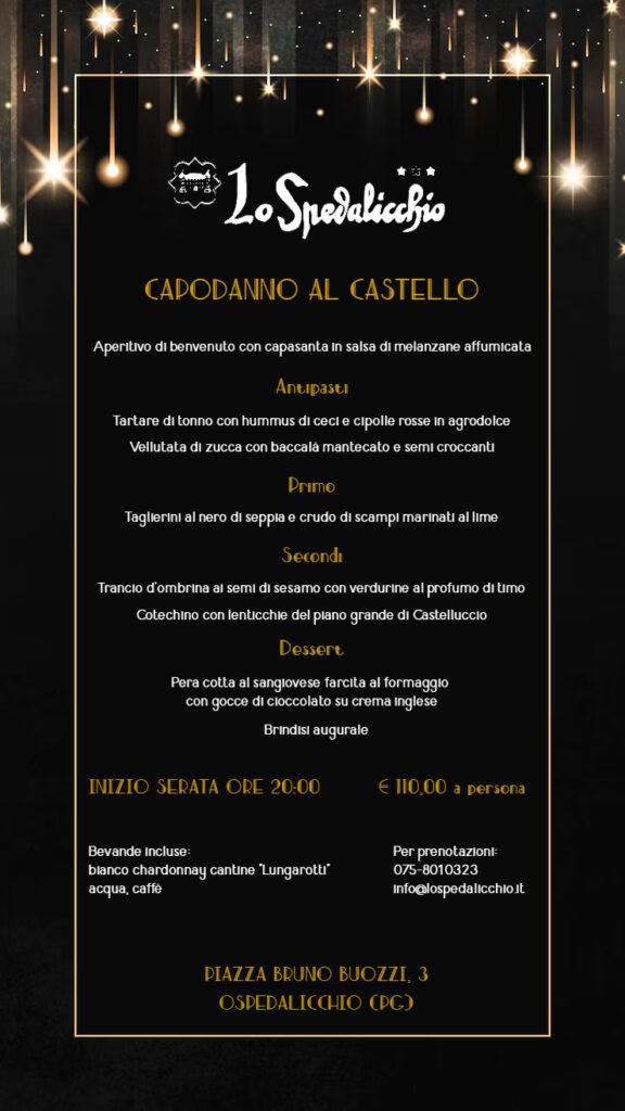 Per informazioni e prenotazioni chiama lo 075 8010323 oppure scrivici un’email: info@lospedalicchio.it